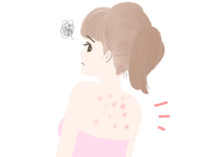 顔ニキビと同様に、毛穴が詰まったり、皮脂や汗が増えたり、菌が繁殖することで発生します。